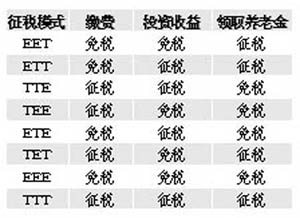 EET是指在企業(yè)年金支付時(shí)征稅,而對(duì)年金的繳費(fèi)和年金投資所形成的收益免稅。在主要的西方發(fā)達(dá)國(guó)家里,選擇EET模式的有英國(guó)、比利時(shí)、德國(guó)、美國(guó)、加拿大等國(guó),選擇ETT模式的有丹麥、意大利、瑞典和澳大利亞,選擇TEE或者TTE模式的是盧森堡、新西蘭。