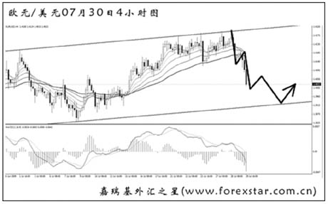 ▲歐元兌美元連續(xù)4次沖擊上升通道上沿,但均未升破。短線下挫力度強(qiáng)勁,后市有望向通道下沿挺進(jìn),位置在1.3915一線。短線轉(zhuǎn)為做空的思路,歐元仍將以區(qū)間走勢為主。