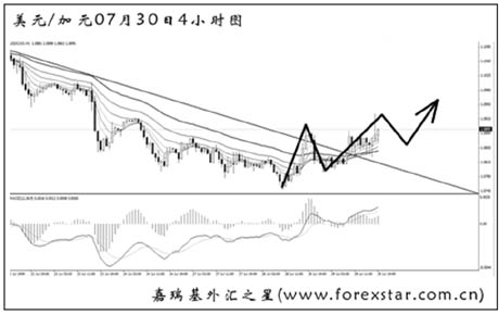 ▲美元兌加元一路創(chuàng)新低,此波反彈終于將包含背離點(diǎn)的下降趨勢線成功升破,為后市展開進(jìn)一步的上漲掃清了障礙。首先要關(guān)注的是1.0920的阻力,升破后方可向1.1000上方挺進(jìn)。 |