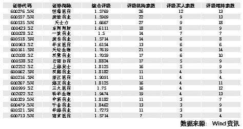 銀河證券表示,看好受益于醫(yī)改帶來的資金流向變化、估值與成長性相匹配、到2010年預期收益率為正的重點公司。其一,看好醫(yī)療機構用藥市場,重點關注處方藥領域,側重于高端?朴盟幒推放破账,建議對優(yōu)質公司堅定持有,并利用市場下跌時機逐步買入;關注最可能得到醫(yī)生和患者認可的“獨家基本藥物品種”生產企業(yè),這些公司將因進入基本藥物目錄而迅速擴大終端市場,并抵消藥品價格下降的影響;其二,看好直接受益于醫(yī)改擴容、盈利能力改善、未來成長空間巨大的醫(yī)藥商業(yè)類公司;其三,看好成長性被市場低估的公司,包括定位于OTC等增長相對平穩(wěn)市場的公司。