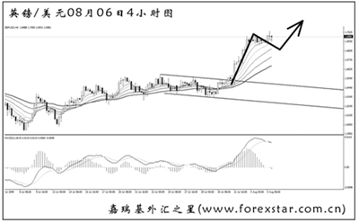 ▲歐元兌美元現(xiàn)已將上升通道的上沿成功突破,短線主客觀方向均向上。目前1.4340的阻力并不能確認為有效突破,但從力度交替的角度考慮,匯價再創(chuàng)新高希望很大。歐元下一道強阻將在1.4720一線。
