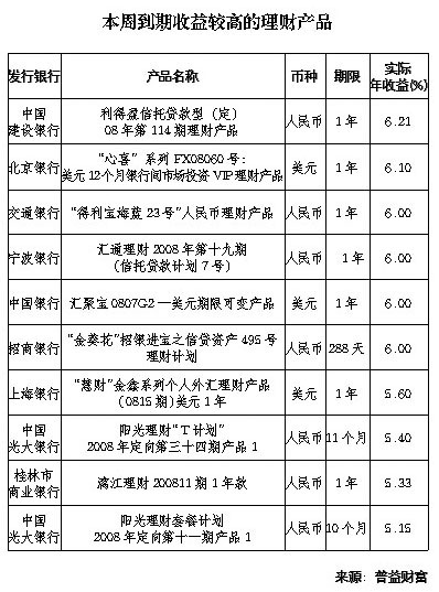 本周到期收益較高的理財產(chǎn)品[圖表]