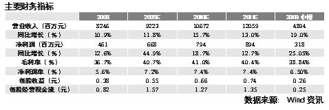 2009年上半年報告期內(nèi),公司銷售啤酒221萬千升,同比增長14%,加上受托經(jīng)營管理的企業(yè)共銷售啤酒234萬千升,增速遠高于啤酒行業(yè)的增速6%。興業(yè)證券研究報告分析指出,由于今年北京天氣炎熱,公司北京市場4、5月單月銷量增速約為20%,6月甚至出現(xiàn)供不應求的局面,第三季度沒有了去年奧運會的影響因素,北京市場銷量增長仍有可能超預期。外埠市場也保持一個高速的增長,上半年啤酒銷量同比增長17%。外埠市場仍存在可挖掘的潛力,也是公司未來的業(yè)績增長點。