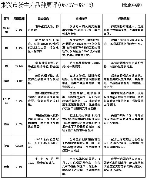 期貨市場(chǎng)主力品種周評(píng)[08.07-08.13]