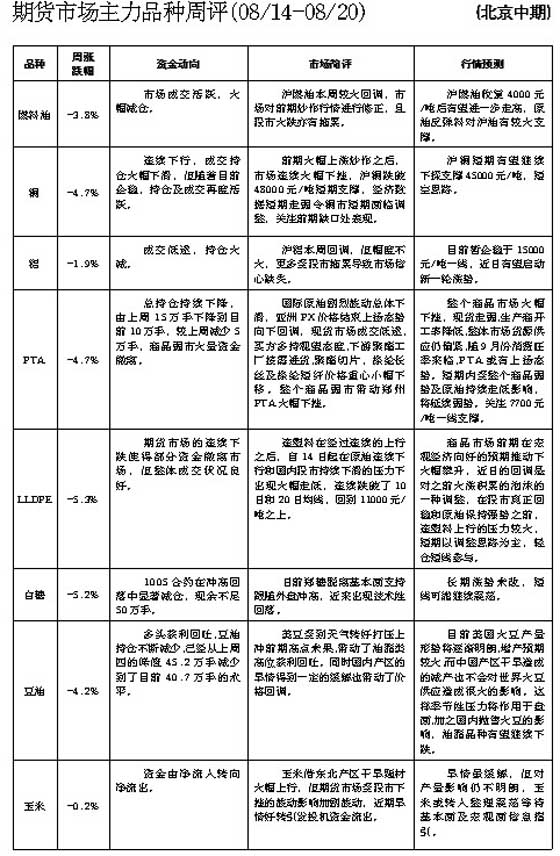 期貨市場主力品種周評[8月14日—8月20日]