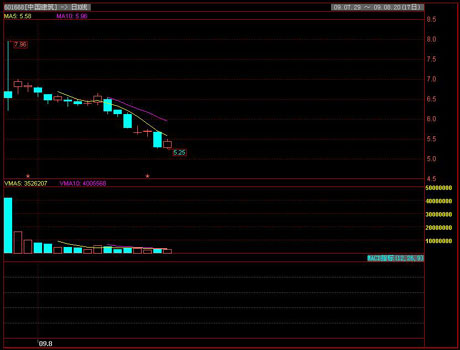 7月29日,中國建筑掛牌上市。由于其發(fā)行市盈率高達(dá)51.29倍,上市首日無人敢炒,當(dāng)日收盤漲幅只有56%。中國建筑上市當(dāng)天,大盤暴跌5%,如此的跌幅不僅近期罕見,更是1664點(diǎn)反彈啟動以來的單日最大跌幅。在8月12日中國建筑計(jì)入指數(shù)這一天,其還帶領(lǐng)滬指向下破位30日生命線,市場的恐慌情緒再度彌漫。