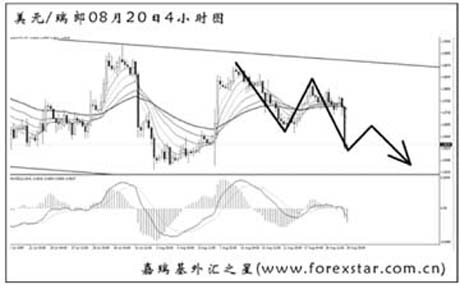 ▲美元兌瑞郎重新形成一個(gè)斜率平緩的下降通道,匯價(jià)保持著橫盤震蕩的節(jié)奏。預(yù)計(jì)后市仍將有一波上行回調(diào),但最終將再創(chuàng)新低,向通道下沿逐步挺進(jìn)。