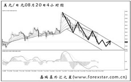 ▲美元兌日元沿著新形成的下降通道一路下跌,4小時(shí)圖均線系統(tǒng)已經(jīng)轉(zhuǎn)為了空頭排列。從波浪角度分析,匯價(jià)目前處于第5浪的可能性較大,后市將出現(xiàn)abc結(jié)構(gòu)調(diào)整。短線可繼續(xù)看空,但空單目標(biāo)不宜低于通道下沿。