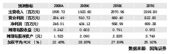 渤海證券的研究報告表示,預(yù)計置信電氣2009-2011年EPS為0.54、0.72和0.91元,未來幾年增長趨勢較為明確,考慮公司作為節(jié)能減排領(lǐng)域的龍頭企業(yè)及在新能源領(lǐng)域的不斷拓展,估值應(yīng)有一定溢價,給予“買入”評級,目標(biāo)價21.5元。 |
