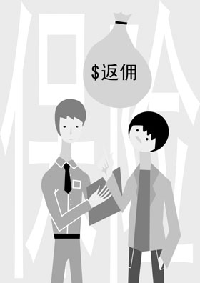 “剛為一個客戶做完計劃,年繳213000元,客戶要我優(yōu)惠30000元,要不然就從別人那里買保單了!北kU代理人趙剛正在為一筆業(yè)務(wù)煩惱,擺在他面前的有兩條路:給,簽下單子,然后完成業(yè)績考核,可以達成公司所有旅游獎勵,但是收入就沒有了;不給,保單無法簽成,業(yè)績完不成,考核估計也會降級。趙剛最后沒有選擇給客戶“返傭”,結(jié)果被公司考核降級。