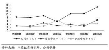 2008年以來(lái)毛利率與費(fèi)用率比較 |