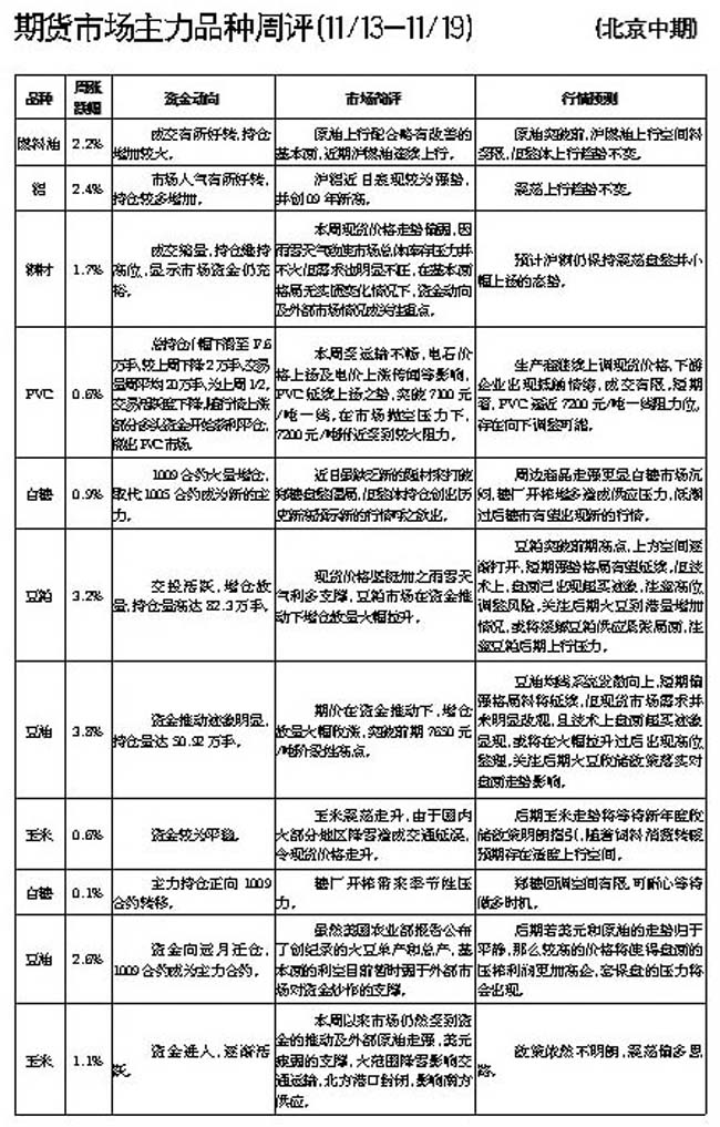 期貨市場主力品種周評[11.13-11.19]