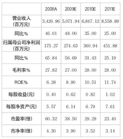 光通信設(shè)備優(yōu)勢(shì)廠商。烽火通信是武漢郵電科學(xué)研究院下屬的通信網(wǎng)絡(luò)建設(shè)供應(yīng)商,圍繞光通信核心領(lǐng)域,縱向貫通產(chǎn)業(yè)鏈,形成了通信系統(tǒng)(主要是光通信網(wǎng)絡(luò))、光纖光纜及電纜、數(shù)據(jù)網(wǎng)絡(luò)三大系列產(chǎn)品,在光通信和光纖光纜領(lǐng)域進(jìn)入國(guó)內(nèi)一類供應(yīng)商行列。2009年在3G建設(shè)的拉動(dòng)下,公司專注多年的光通信產(chǎn)品大規(guī)模應(yīng)用,收入終于突破平臺(tái),持續(xù)實(shí)現(xiàn)快速增長(zhǎng)。 光通信——精彩才剛剛開(kāi)始。3G方面,基站建設(shè)高峰過(guò)后,后續(xù)的網(wǎng)絡(luò)升級(jí)和移動(dòng)增值業(yè)務(wù)大幅增長(zhǎng)還將為光通信設(shè)備帶來(lái)源源不斷的需求。FTTx方面,我們認(rèn)為政策導(dǎo)向、市場(chǎng)驅(qū)動(dòng)、技術(shù)日趨成熟以及便宜的資費(fèi)政策等驅(qū)動(dòng)FTTx規(guī)模發(fā)展的因素已經(jīng)成熟。FTTx產(chǎn)業(yè)真正由概念和試點(diǎn)步入規(guī)模建設(shè),成為產(chǎn)業(yè)鏈上下游普遍受益的行業(yè)性機(jī)會(huì),光通信行業(yè)的景氣度仍將持續(xù)。