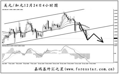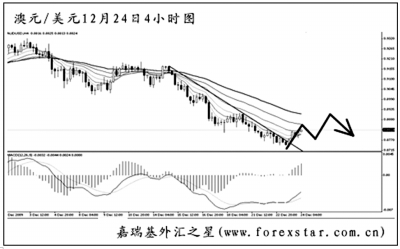 ▲澳元兌美元順利將0.8905的日線圖道氏理論支撐跌破,中線的漲勢(shì)告一段落。短線匯價(jià)將包含MACD底背離點(diǎn)的下降趨勢(shì)線升破,預(yù)計(jì)還將有一定程度的上調(diào)。關(guān)注0.8915一線的阻力,圖中均線系統(tǒng)的壓制位也在于此。澳元在這一帶遇阻回落的希望很大。