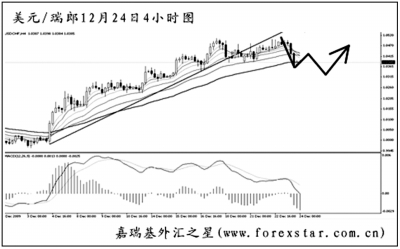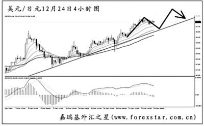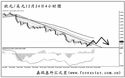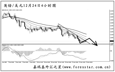 ▲歐元兌美元在跌破1.4625的支撐后加速下行,日線圖MACD顯示空頭動(dòng)能強(qiáng)勁。短線匯價(jià)發(fā)生了一串的MACD底背離信號(hào),目前剛剛把下降趨勢(shì)線升破。預(yù)計(jì)歐元調(diào)整過后仍將有一波上攻,但在圖中均線系統(tǒng)的壓制下再度轉(zhuǎn)為下行的概率很大。 |