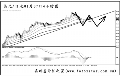 ▲美元兌日元將包含MACD頂背離點的上升趨勢線小幅跌穿,同時正在考驗日線圖道氏理論顯著高點的阻力92.30,升破方可結(jié)束其中線的跌勢。短線匯價有望走出一波abc結(jié)構(gòu)調(diào)整,關(guān)注91.00一線的支撐,預(yù)計在此一帶回歸上漲的希望很大。