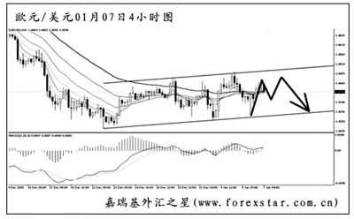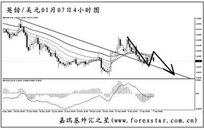 ▲英鎊兌美元將下降趨勢線升破后未能加速上行,目前在對趨勢線發(fā)生回抽。從日線圖上看,英鎊此波下跌的目標(biāo)仍在1.5700一線,尚有一定的空間。圖中的MACD處于空頭動能充盈階段,預(yù)計英鎊小幅回調(diào)后再度創(chuàng)出新低的概率較大。