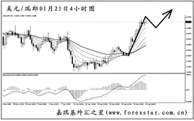 ▲美元兌瑞郎短線上行,即將挑戰(zhàn)12月中旬高點1.0505的阻力。圖中MACD顯示匯價的上漲動能強勁,應繼續(xù)以看漲為主。從日線圖上看,若走出abc結(jié)構(gòu)調(diào)整,則上方的空間至少還有將近300點,待調(diào)整出現(xiàn)后可繼續(xù)做多。