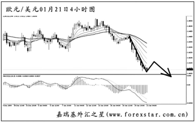 ▲歐元兌美元短線加速下行,下跌力度迅猛。匯價下方的強支撐在去年6月中旬的低點1.3745,此位置為此波歐元下跌的“終極”目標。圖中均線系統(tǒng)空頭排列,主客觀方向均下看。歐元有向上回抽1.4215一線的風險,但看空的思路不變。