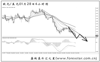 ▲歐元兌美元沿圖中的下降趨勢(shì)線(xiàn)完好下挫,主客觀方向均下看。匯價(jià)距離下方的強(qiáng)支撐1.3750尚遠(yuǎn),下跌空間較為廣闊。由于小時(shí)圖的下跌動(dòng)能明顯減弱,歐元隨時(shí)有向趨勢(shì)線(xiàn)發(fā)起回調(diào)的風(fēng)險(xiǎn),做空應(yīng)等待良好的調(diào)整節(jié)奏出現(xiàn)后方可入場(chǎng)。