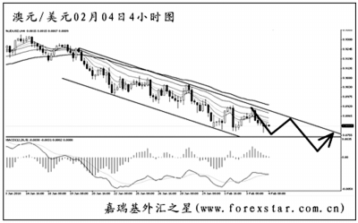 ▲英鎊兌美元下行即將考驗(yàn)下方的兩道強(qiáng)支撐1.5830和1.5705,短線的下跌趨勢(shì)保持良好。圖中的下跌通道為經(jīng)驗(yàn)性畫法形成,目前處于通道中部,英鎊短線仍有望再創(chuàng)新低。操作上可繼續(xù)做空英鎊,但在接近1.5700時(shí)建議先行離場(chǎng)觀望。