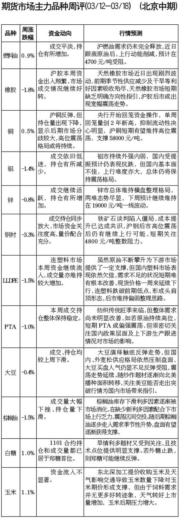 期貨市場主和品種周評[03.12-03.18]