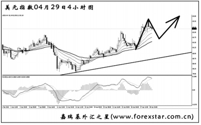 上周五美國證券交易委員會起訴高盛的事件對金融市場造成的進一步影響短暫,本周市場再度將焦點放在希臘債務(wù)危機問題上。與歐洲金融市場愈發(fā)動蕩形成鮮明對比的是,美國經(jīng)濟復(fù)蘇前景更為樂觀,美元因此有望再創(chuàng)短線新高。 歐盟統(tǒng)計局上調(diào)希臘預(yù)算缺口以及穆迪下調(diào)希臘主權(quán)債務(wù)評級的消息令希臘金融市場本周再度經(jīng)歷混亂不堪的局面。面對市場擔(dān)憂情緒所造成的借貸成本不斷上升的情形,希臘總理帕潘德里歐正式請求啟動歐盟/國際貨幣基金組織共同救助機制。接下來,歐盟、國際貨幣基金組織和歐洲央行將會對這一請求進行審核,之后待歐元區(qū)其他15個成員國批準(zhǔn)之后,救助計劃中由歐元區(qū)承諾的300億歐元救助資金才能開始向希臘提供。此前,歐盟統(tǒng)計局公布的數(shù)據(jù)顯示,希臘2009年預(yù)算赤字占GDP比例高達13.6%,這較之前希臘政府預(yù)期的12.7%高出將近1個百分點。更令投資者感到絕望的是,鑒于一系列原因,歐盟統(tǒng)計局還表示,對希臘的財政數(shù)據(jù)的準(zhǔn)確度持保留態(tài)度,不排除進一步上修的可能。另外,美國穆迪投資服務(wù)公司也下調(diào)希臘主權(quán)債務(wù)評級,并表示可能會進一步下調(diào),原因在于希臘的借款成本可能最終遠(yuǎn)超其之前的預(yù)期。穆迪將希臘主權(quán)債務(wù)的評級從“A2”下調(diào)至“A3”,較投機或“垃圾”級僅高四個級距,穆迪還將評級列入負(fù)面觀察名單。不過,市場人士仍對規(guī)模為450億歐元的援助機制存疑,因這可能無法解決希臘面臨的削減預(yù)算赤字的長期問題。 在歐洲金融市場愈發(fā)動蕩的背景下,美聯(lián)儲在結(jié)束為期兩日的會議后于北京時間4月29日凌晨宣布維持利率在0至0.25%區(qū)間不變,并再度重申利率將在較長時間內(nèi)持于異常低位,但對經(jīng)濟復(fù)蘇和就業(yè)市場的言論更為樂觀。美聯(lián)儲稱,經(jīng)濟活動持續(xù)增強,就業(yè)市場開始改善。銀行借貸繼續(xù)收縮,但金融市場仍支持經(jīng)濟增長。對就業(yè)市場的描述較3月有所“改觀”,當(dāng)時美聯(lián)儲只不過表示,就業(yè)市場正在“趨穩(wěn)”,但美聯(lián)儲重申雇主對增加人手仍在猶豫。美聯(lián)儲重申了市場密切留意的利率可能維持異常低點“一段長時間”的措辭,主因低通脹和高失業(yè)率。美聯(lián)儲重申在一段時間內(nèi)通脹將可能保持溫和,因大量的資源閑置令成本壓力受限。美聯(lián)儲聯(lián)邦公開市場委員會以9:1的投票通過利率決定,堪薩斯城聯(lián)儲主席霍恩連續(xù)第三次在會議上持反對意見,他稱在較長時間內(nèi)保持利率在異常低水平的承諾不再合理,認(rèn)為這可能“造成未來的失衡”,在一段時間內(nèi)保持低利率的承諾限制了美聯(lián)儲開始小幅升息的靈活性。美聯(lián)儲重申,委員會將密切關(guān)注經(jīng)濟前景,在必要時利用政策工具促進復(fù)蘇和價格穩(wěn)定。美聯(lián)儲稱,鑒于金融市場的功能性改善,除定期資產(chǎn)支持證券貸款工具以外已結(jié)束所有特殊流動性工具。 美元指數(shù)繼續(xù)沿日線圖的上升通道運行,目前中線道氏理論的最后一個顯著低點在80.00,此位置為美元指數(shù)上漲過程中的強支撐。MACD發(fā)出了大角度的頂背離信號,預(yù)示多頭動能有所減弱。美元指數(shù)有向下回探通道下沿的風(fēng)險,但跌破的概率不大,后市再創(chuàng)新高為大概率事件。