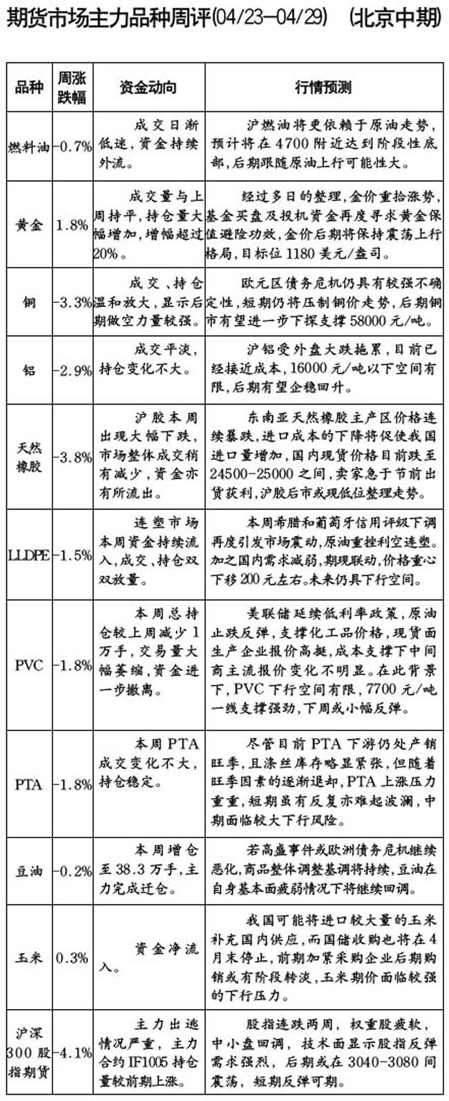 期貨市場主力品種周評[04.23-04.29]