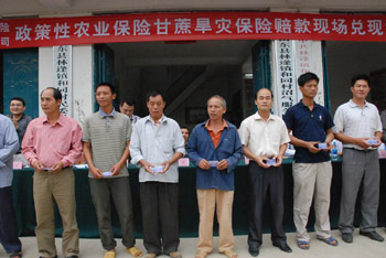 進(jìn)入2010年4月,中國人民財產(chǎn)保險股份有限公司田東支公司的工作人員非常繁忙,幾乎每天都會接到蔗農(nóng)甘蔗因旱受災(zāi)的報案電話,每天都要到甘蔗地里現(xiàn)場查看并辦理賠付。 甘蔗減產(chǎn)波及整個田東縣,蔗農(nóng)損失慘重。田東縣農(nóng)業(yè)局糖辦主任蘇建新介紹,這個榨季全縣36萬畝甘蔗入榨總量136萬噸,比上一榨季減少了約34萬噸;干旱造成甘蔗單產(chǎn)不到3.8噸,至少減產(chǎn)了20%。 廣西百色市田東縣平馬鎮(zhèn)懷民村村民黃山領(lǐng)2009/2010年榨季種了10畝甘蔗,去年8月以來的持續(xù)干旱造成大幅減產(chǎn),只收了約40噸甘蔗,比上一榨季減產(chǎn)近50%,按照目前的甘蔗收購價,他這個榨季至少損失收入1.3萬元。 在大災(zāi)之年,一些蔗農(nóng)因為一份保險協(xié)議大大減輕了損失。去年5月開始,田東縣按照“政府主導(dǎo)、財政支持、公司經(jīng)營、農(nóng)民自愿”的原則,從去年5月開始推出了甘蔗、香蕉種植的政策性農(nóng)業(yè)生產(chǎn)保險。 如今,這份保險已經(jīng)成為農(nóng)戶甘蔗因旱受損后減少損失的一座堅實“靠山”。田東縣副縣長吳風(fēng)雷說,“在保險期限內(nèi)全縣蔗農(nóng)將從保險公司得到賠付數(shù)百萬元,這大大減輕了農(nóng)民的損失,對農(nóng)業(yè)風(fēng)險的保障作用十分明顯! “請獲得賠款的韋定美、廖劍鋒等12位農(nóng)戶代表上臺領(lǐng)款!苯衲4月30日,田東縣甘蔗旱災(zāi)保險賠款現(xiàn)場兌現(xiàn)大會上,數(shù)百名農(nóng)民朋友興高采烈地把現(xiàn)場圍了個水泄不通。中國人保財險田東支公司經(jīng)過勘察災(zāi)情,確認(rèn)有9600多畝甘蔗受損,根據(jù)嚴(yán)重、中度、輕度三個損失程度,最后確定全縣甘蔗賠償為120萬元,最高單筆賠償為1.3萬元。林逢鎮(zhèn)和同村568戶4387畝獲得賠償6萬多元。 林逢鎮(zhèn)和同村村主任廖藝榮告訴記者,他家種植了9畝甘蔗,受旱災(zāi)影響嚴(yán)重,經(jīng)保險公司現(xiàn)場核查因災(zāi)受損面積為3畝,總共得到900多元的賠付款。 在和同村,村民主要靠種植甘蔗為生,700多戶目前有612戶參保,參保率達(dá)到90%以上。此次旱災(zāi)中,保險公司現(xiàn)場核查后核定賠付145畝甘蔗損失,參保農(nóng)戶獲得最多的賠付款有3000多元。 “我們這里甘蔗每年都有火災(zāi)、旱災(zāi)發(fā)生的危險,農(nóng)戶每畝地只需要出2.5元,相當(dāng)于少吃一頓肉的錢,旱災(zāi)發(fā)生后就可以獲得大實惠!焙屯迮獡芡娃r(nóng)民黃紹崔說,“我們屯里戶戶都參保,參保率100%,總共種植300畝甘蔗,一共核定賠付30畝。”