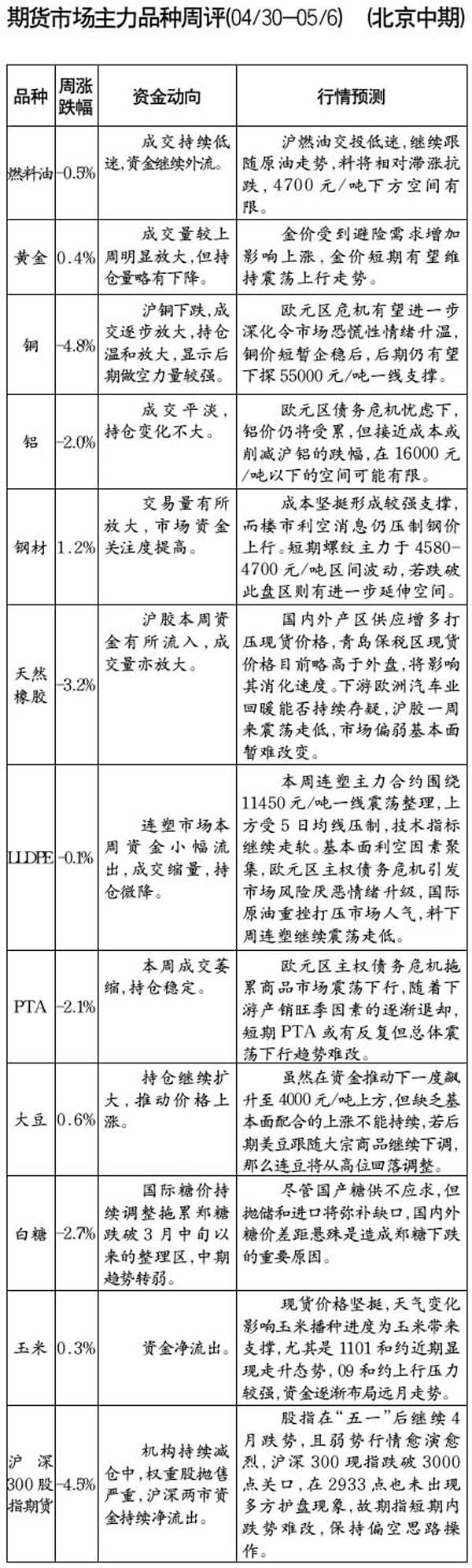 期貨市場(chǎng)主力品種周評(píng)[04.30-05.06]