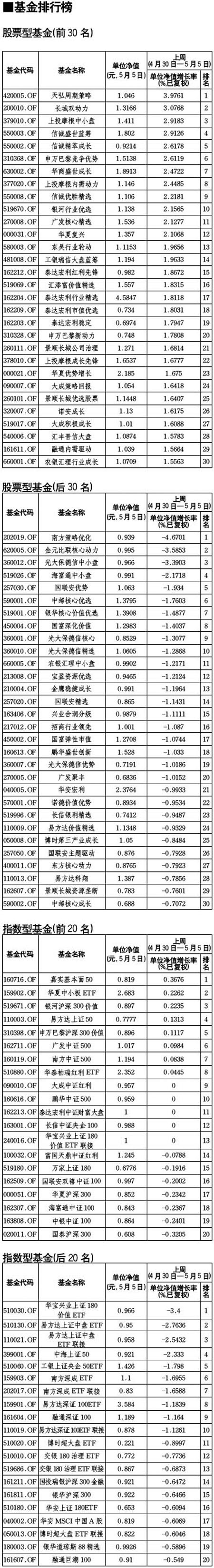 股票型基金排行榜[2010-05-07]