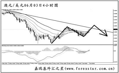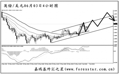 ▲美元兌瑞郎在小幅創(chuàng)出新高之后急速下跌,圖中發(fā)出了角度明顯的MACD頂背離信號。最近一周多以來,匯價(jià)的震蕩節(jié)奏明顯,對交易的影響較大。雖然中線上的漲勢沒有任何改變,但短線繼續(xù)沖高的動能已顯不足,預(yù)計(jì)下周將是一個(gè)逐步下跌調(diào)整的走勢。