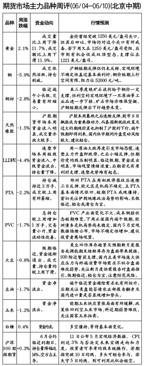 期貨市場主力品種周評[06.04-06.11]