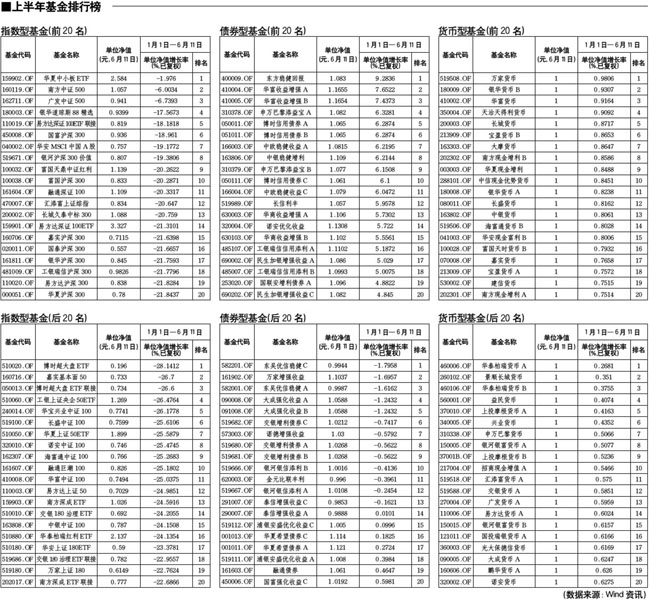 上半年基金排行榜