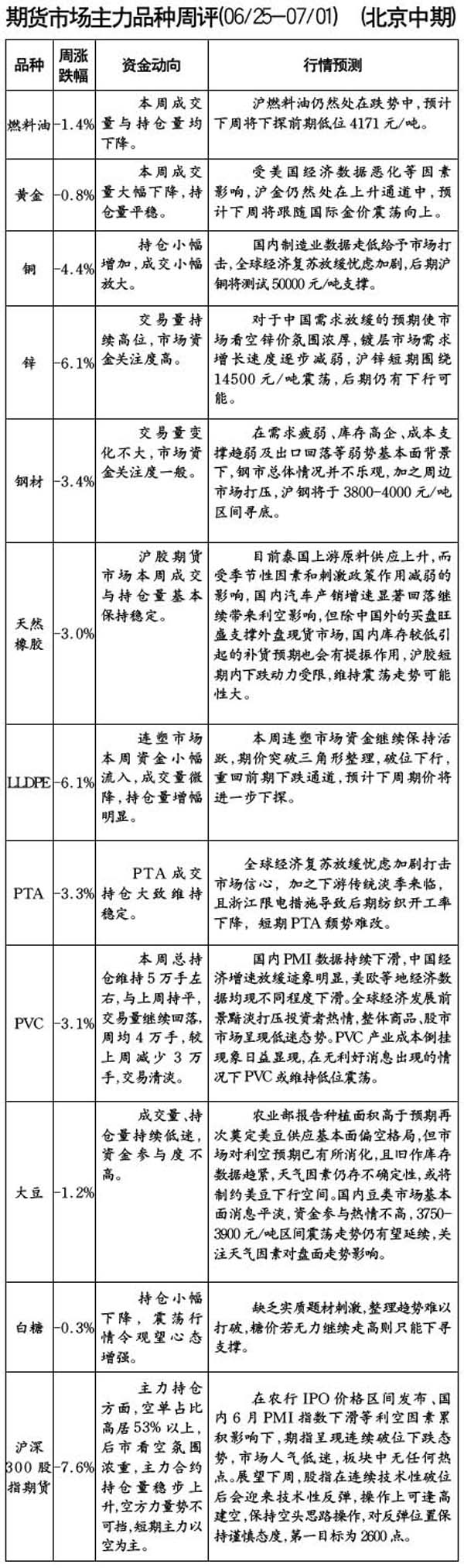期貨市場(chǎng)主力品種周評(píng)[06.25-07.01]