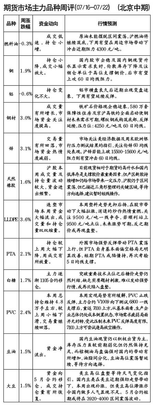 期貨市場(chǎng)主力品種周評(píng)[07.16-07.22]