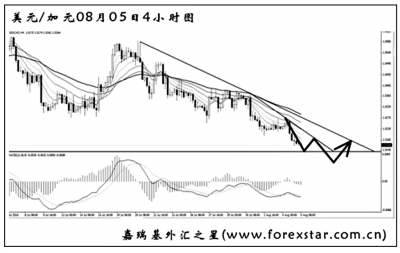 ▲美元兌加元繼續(xù)處于日線圖的大震蕩區(qū)間之中,但短線的下跌趨勢明朗。圖中的兩條下降趨勢線均對其有明顯的壓制作用。由于匯價距離1.0140的前方低點(diǎn)支撐已經(jīng)不遠(yuǎn),面臨一定的反彈風(fēng)險?傻却涝獌都釉{(diào)至圖中上方趨勢線阻力一帶再行考慮入場。