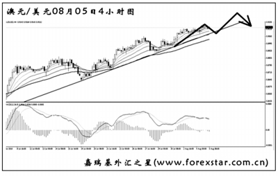▲澳元兌美元的漲勢延續(xù),趨勢線和均線系統(tǒng)的依托作用良好。圖中的MACD發(fā)生了數(shù)次的頂背離信號,但在趨勢線被跌破前,需繼續(xù)保持看漲澳元的思路。短線匯價有向趨勢線發(fā)起回調(diào)的欲望,隨即遭遇支撐繼續(xù)創(chuàng)新高的希望很大。預(yù)計(jì)下周澳元將是一個沖高回落的運(yùn)行節(jié)奏。