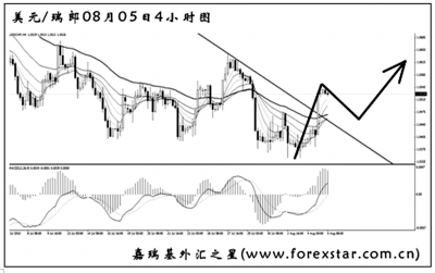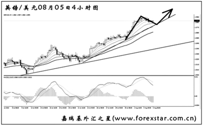 ▲美元兌瑞郎將包含MACD底背離點(diǎn)的上升趨勢線強(qiáng)力升破,預(yù)示匯價將有一波明顯的反彈行情。大級別道氏理論顯著高點(diǎn)阻力在1.0640,這是美元兌瑞郎這波挑戰(zhàn)的首要目標(biāo)。短線如果出現(xiàn)清晰的主次節(jié)奏或中繼形態(tài),可以小倉做多,等上述阻力突破后再逐漸加大倉位。