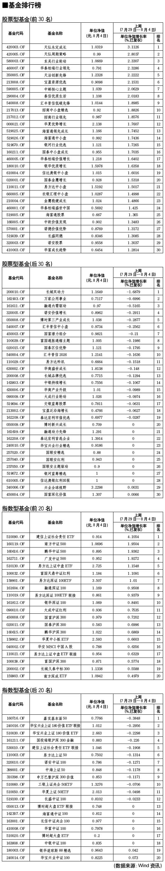 股票型基金排行榜[2010-08-06]