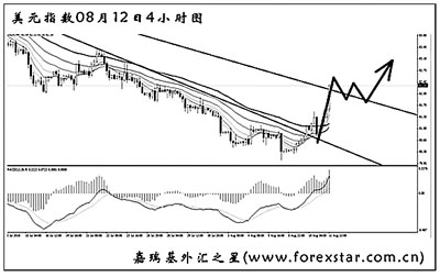 上周,澳大利亞央行首先將隔夜拆款利率目標(biāo)維持在4.50%,為連續(xù)第三個月維持不變。而英國央行和歐洲央行分別維持指標(biāo)利率在0.5%和1.0%的紀(jì)錄低點不變,英國央行也未宣布新的量化寬松購買計劃,符合市場的廣泛預(yù)期。 8月6日,美國勞工部公布了備受市場關(guān)注的7月非農(nóng)就業(yè)數(shù)據(jù),作為美國經(jīng)濟(jì)的頑癥,就業(yè)數(shù)據(jù)的意外疲軟進(jìn)一步加劇了市場對于美國經(jīng)濟(jì)前景的擔(dān)憂。數(shù)據(jù)顯示,美國7月非農(nóng)就業(yè)人數(shù)減少13.1萬人,預(yù)期減少6.3萬人,降幅超出預(yù)期。而失業(yè)率則持穩(wěn)在9.5%不變。美國7月非農(nóng)就業(yè)數(shù)據(jù)為經(jīng)濟(jì)復(fù)蘇正失去動能提供了進(jìn)一步的佐證。經(jīng)濟(jì)學(xué)家預(yù)計,美國失業(yè)率的下降會非常緩慢,這是因為求職者此前因求職遭挫,已經(jīng)停止在勞動力市場尋找就業(yè)機(jī)會,而這些人已被計入失業(yè)者行列。有跡象顯示美國勞動力市場正在持續(xù)疲軟,且通脹壓力依然存在。美聯(lián)儲8月10日宣布,將聯(lián)邦基金利率繼續(xù)維持在歷史最低點的零至0.25%的水平,并表示將購買更多國債以刺激經(jīng)濟(jì)復(fù)蘇。 美元指數(shù)在非農(nóng)數(shù)據(jù)的幫助下進(jìn)行了最后一波下攻,但成功守穩(wěn)在80.00的整數(shù)關(guān)口以上。本周開始,匯價自低位逐步反彈,首先將包含圖中MACD底背離點的下降趨勢線升破。此后美元指數(shù)的上行加速,由于道氏理論顯著高點阻力也告失守,預(yù)計美元指數(shù)在進(jìn)行一輪調(diào)整后將繼續(xù)向83.45一線發(fā)起沖擊。 下周需重點關(guān)注的財經(jīng)數(shù)據(jù)及事件包括:8月13日,歐元區(qū)公布第二季度GDP初值年率(前值0.6%)、美國公布7月零售銷售月率(前值-0.5%)、7月消費者物價指數(shù)月率及年率(前值-0.1%、+1.1%)、8月密歇根大學(xué)消費者信心指數(shù)初值(前值67.8);8月16日,日本公布第二季度實際GDP初值季率(前值+1.2%)、美國公布8月紐約聯(lián)儲制造業(yè)指數(shù)(前值5.08)、6月長期及國際資本凈流入(前值+150億、+175億美元);8月17日,美國公布7月生產(chǎn)者物價指數(shù)月率及年率(前值-0.5%、+2.8%)、7月新屋開工總數(shù)年化(前值54.9萬戶)、7月工業(yè)產(chǎn)出月率(前值+0.1%);8月19日,美國公布7月諮商會領(lǐng)先指標(biāo)(前值109.8)、8月費城聯(lián)儲制造業(yè)指數(shù)(前值5.1)。 |