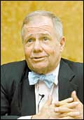 近日,在上海舉行的2007國(guó)際金融投資博覽會(huì)上,投資大師吉姆羅杰斯先生再度語(yǔ)出驚人,“我認(rèn)為中國(guó)股市的牛市還將持續(xù)80年!弊鳛楹蘸沼忻牧孔踊饎(chuàng)始人之一,羅杰斯稱他從未賣出過(guò)中國(guó)股票,只有買入,最新一次的買入行為就發(fā)生在上周。 (《上海證券報(bào)》)