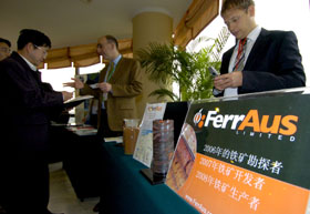 10月25日,來(lái)自國(guó)外的鐵礦石供貨商在展示自己的產(chǎn)品。
