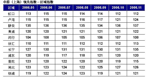 2006年11月中原(上海)領(lǐng)先指數(shù)為121點,樣本成交均價13703元/平方米,環(huán)比上漲0.27%;本月二手房成交量有所增加,總體來說,11月上海中高檔二手房市場呈價平量升的態(tài)勢。