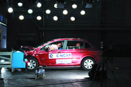 2006年8月29日,根據(jù)世界通行規(guī)則實(shí)施的中國新車安全評價(jià)體系C-NCAP在位于天津的中國汽車技術(shù)研究中心正式啟動。據(jù)了解,該中心是目前國內(nèi)惟一具有獨(dú)立性的綜合性汽車科研機(jī)構(gòu),并由政府授權(quán)組織制訂中國汽車標(biāo)準(zhǔn)法規(guī)。1999年以來,該中心已累計(jì)進(jìn)行過1200多車次的實(shí)車碰撞試驗(yàn),去年又投資1000萬元更新和改進(jìn)了相關(guān)設(shè)施,增添了試驗(yàn)假人,使碰撞試驗(yàn)?zāi)芰_(dá)到國外同類NCAP機(jī)構(gòu)的水平。此外,清華大學(xué)汽車碰撞試驗(yàn)室、一汽長春汽車研究所、二汽襄樊汽車試驗(yàn)研究所等機(jī)構(gòu)也具備汽車碰撞試驗(yàn)?zāi)芰,這些都為積極開展汽車被動安全性研究提供了硬件條件。