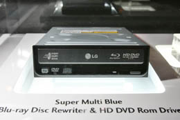 韓國LG電子公司在拉斯維加斯國際消費(fèi)電子展上推出的全球首款既可播放藍(lán)光碟片又能播放高清光盤的雙格式DVD播放器。本報(bào)記者:呂明響