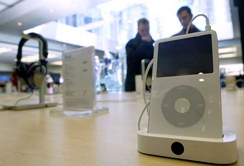 蘋果公司售出第一億臺iPod播放器。 圖為紐約第五大道蘋果旗艦店展示的iPod播放器。據(jù)稱,蘋果售出一億臺iPod用時6年,而索尼公司隨身聽完成這個銷售數(shù)字用了14年。(本報資料照片)