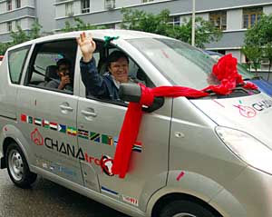 5月11日,由長安汽車集團旗下4輛中國自主品牌汽車組成的南非遠行車隊在渝啟程。新華社記者 劉潺 攝