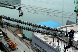 5月25日,三峽右岸電站送電工程線路架設全部完工,為右岸電站機組投產(chǎn)發(fā)電奠定了基礎。三峽右岸電站500千伏輸電系統(tǒng)采用7回線路向華中、華東、華南等地區(qū)送電。