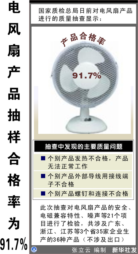 我國電風(fēng)扇產(chǎn)品抽樣合格率為91.7%[圖]